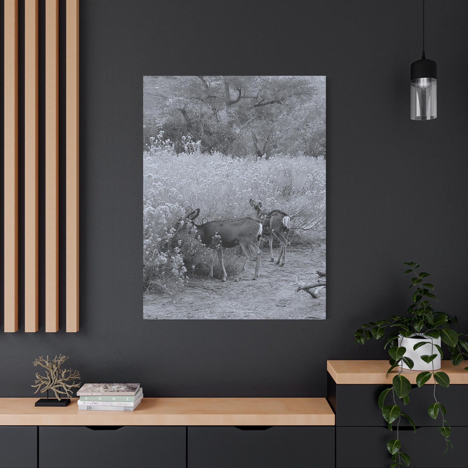Black & White Deer Canvas – Rustic Nature Wall Art for Animal Lovers