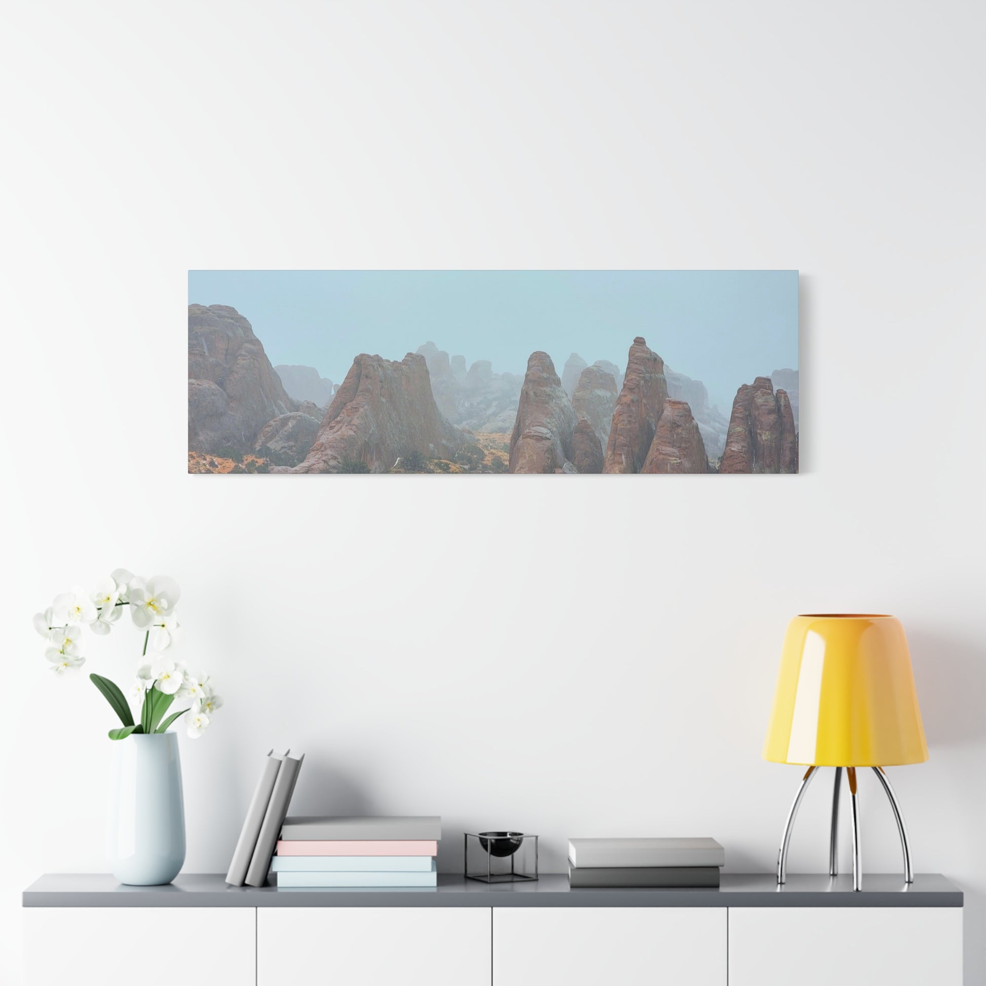 Experience the serene atmosphere of snow-covered mountains at Arches National Park with this matte canvas print. Perfect for nature lovers and adventure enthusiasts, this stretched canvas brings the beauty of nature into your home. Ideal for those who appreciate sustainable and eco-friendly products, this canvas is a great addition to your decor for holidays, celebrations, or everyday enjoyment.
